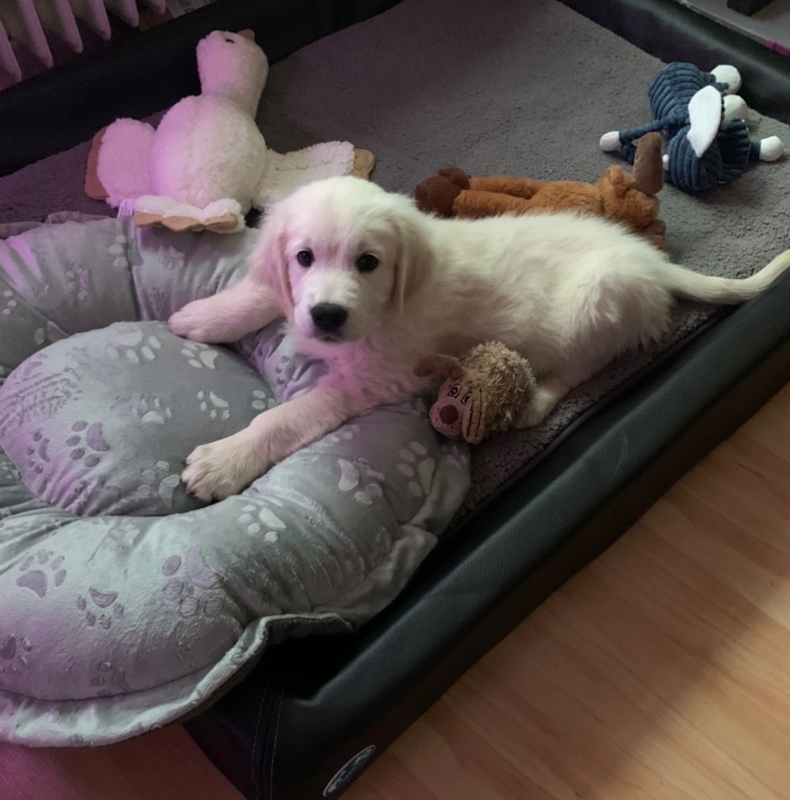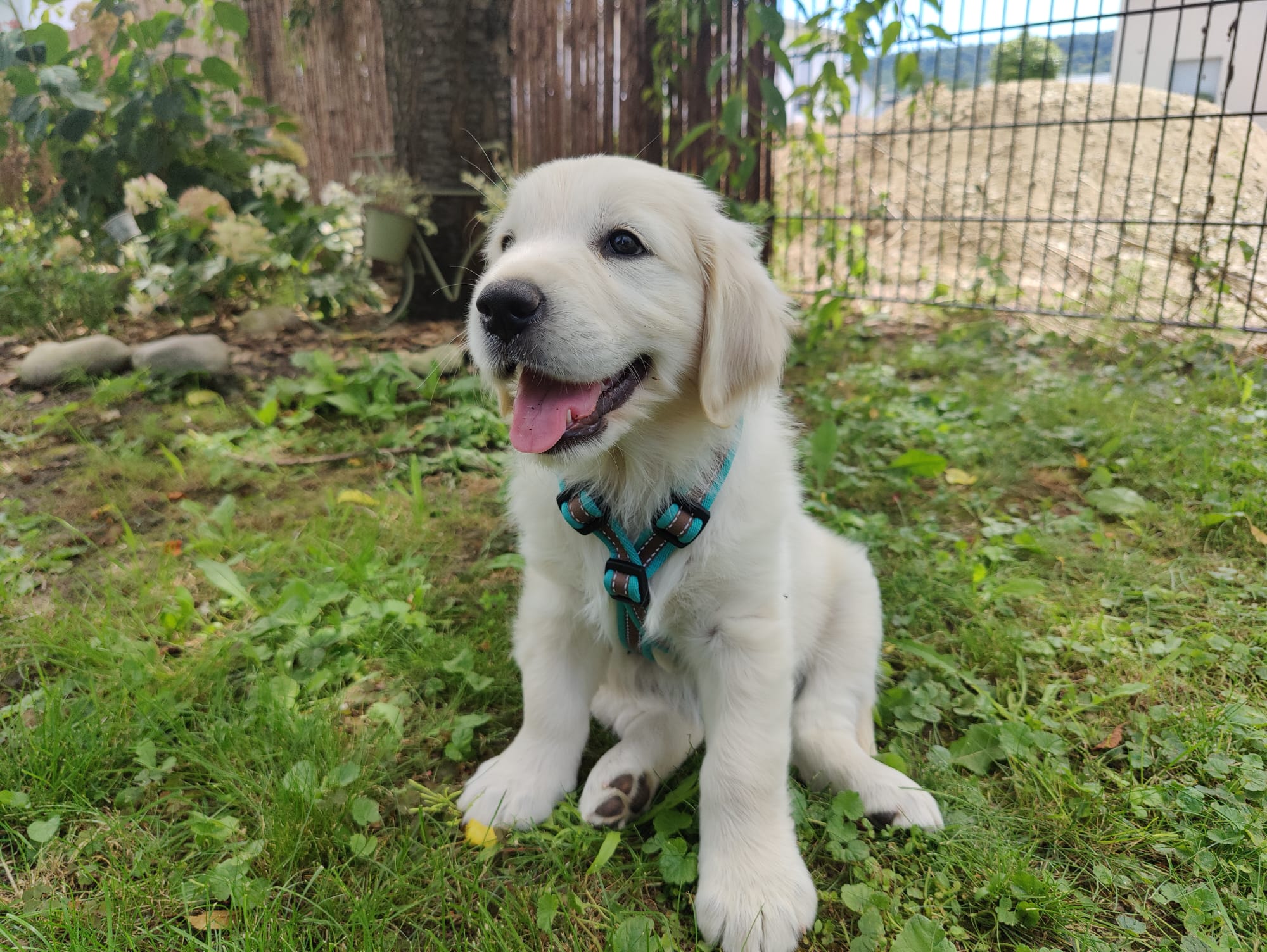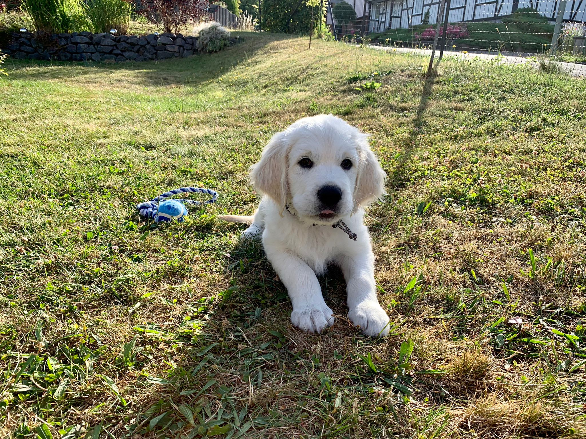 Das ist Hannes, er sucht noch seine Familie. Er ist 8 Wochen alt und ein ganz lieber und pfiffiger goldfarbener Rüde
