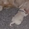 Es war eine sehr langwierige Geburt. Am Montagabend haben die Wehen begonnen und die ganze Nacht über angedauert. Am Dienstagnachmittag wurden sie weniger und Charlotte konnte etwas ausruhen. In der Nacht zum Mittwoch gegen 3 Uhr ging es dann wieder los. Diesesmal mit mehr Power und so wurde dann um 5.27 Uhr eine kleine Hündin mit 430g geboren. Um 6.12 folgte ein kleiner Rüde mit 410g.